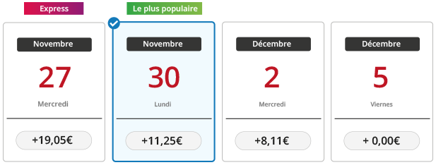 Sélectionnez le délai de livraison qui correspond le mieux à vos besoins.
